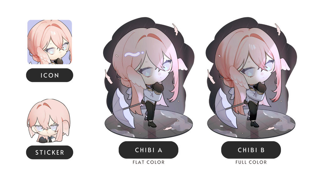 ✦ แถมชาร์จสี และสามารถขอตัวละครแบบสีเบสได้ (แต่รบกวนแจ้งไว้ก่อนเริ่มงานด้วยนะคะ)