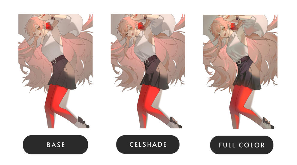 ✦ Cel Shade จะเป็นเงาแบบแข็ง / Full color เป็นเงาแบบนุ่ม